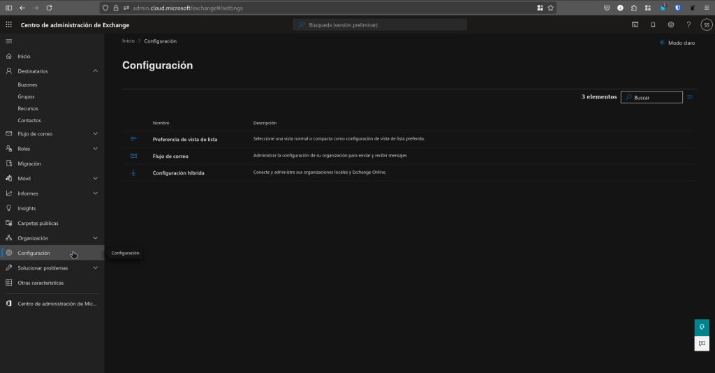 5. Ahora ingrese al Centro de administración de Exchange con la URL https://admin.cloud.microsoft/exchange#/homepage