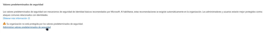 3. Desplácese hacía el final de la página y seleccione la opción Administrar Valores Predeterminados de Seguridad.